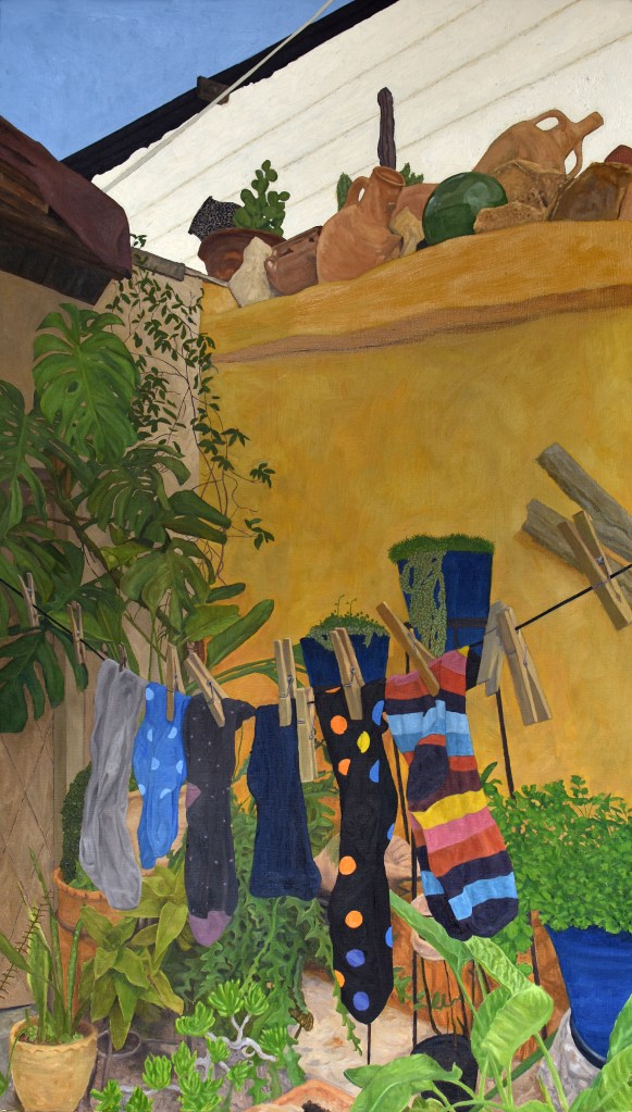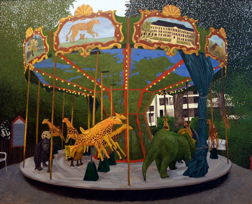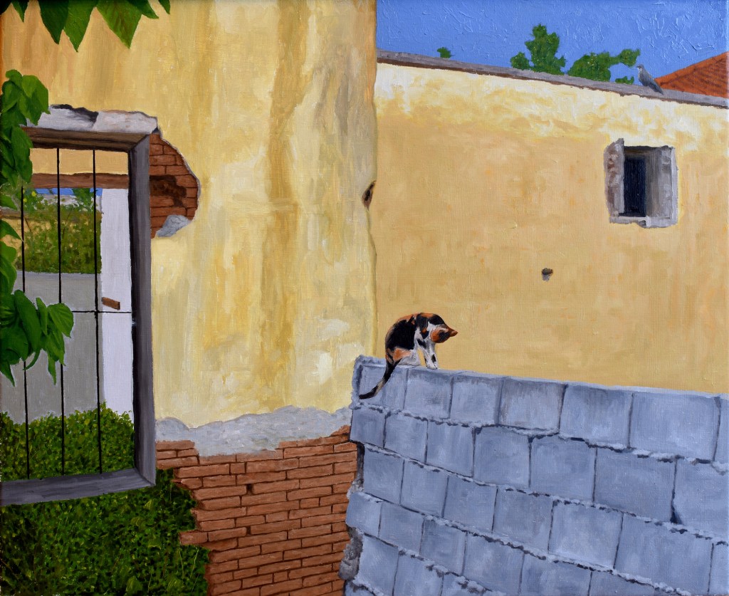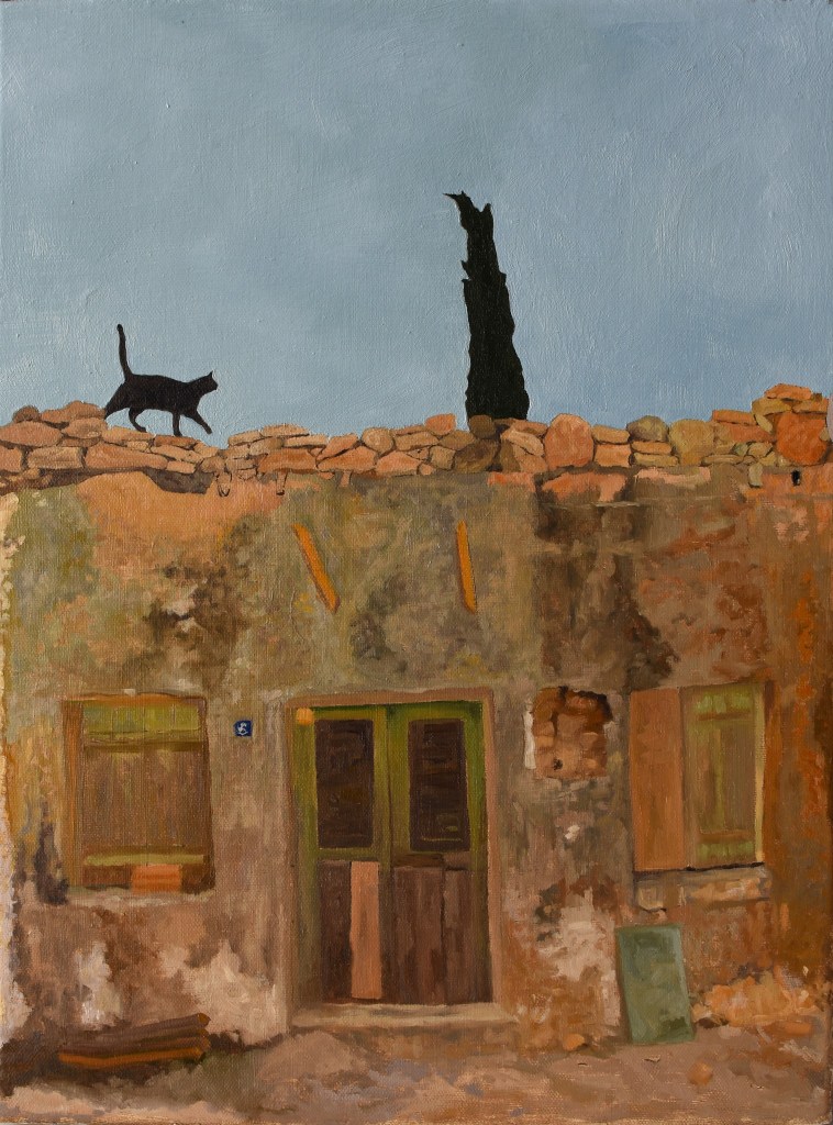 Cockerel with Hen on Rooftop, Oil on Linen, 40 x 29 cm, 2025Dodo Manège, Oil on Linen, 75 x 60 cm, 2025My Sister’s Peristylium, 102 x 58 cm, Oil on Linen, 2024No 6 of Agia Erini, Oil on Canvas, 41 x 31 cm, 2023The Sunbather, Oil on Canvas, 50 x 40 cm, 2023A Nap, Oil on Canvas, 80 x 60 cm, 2017Midnight Call, Oil on Canvas, 77 x 122 cm, 2018 Oil